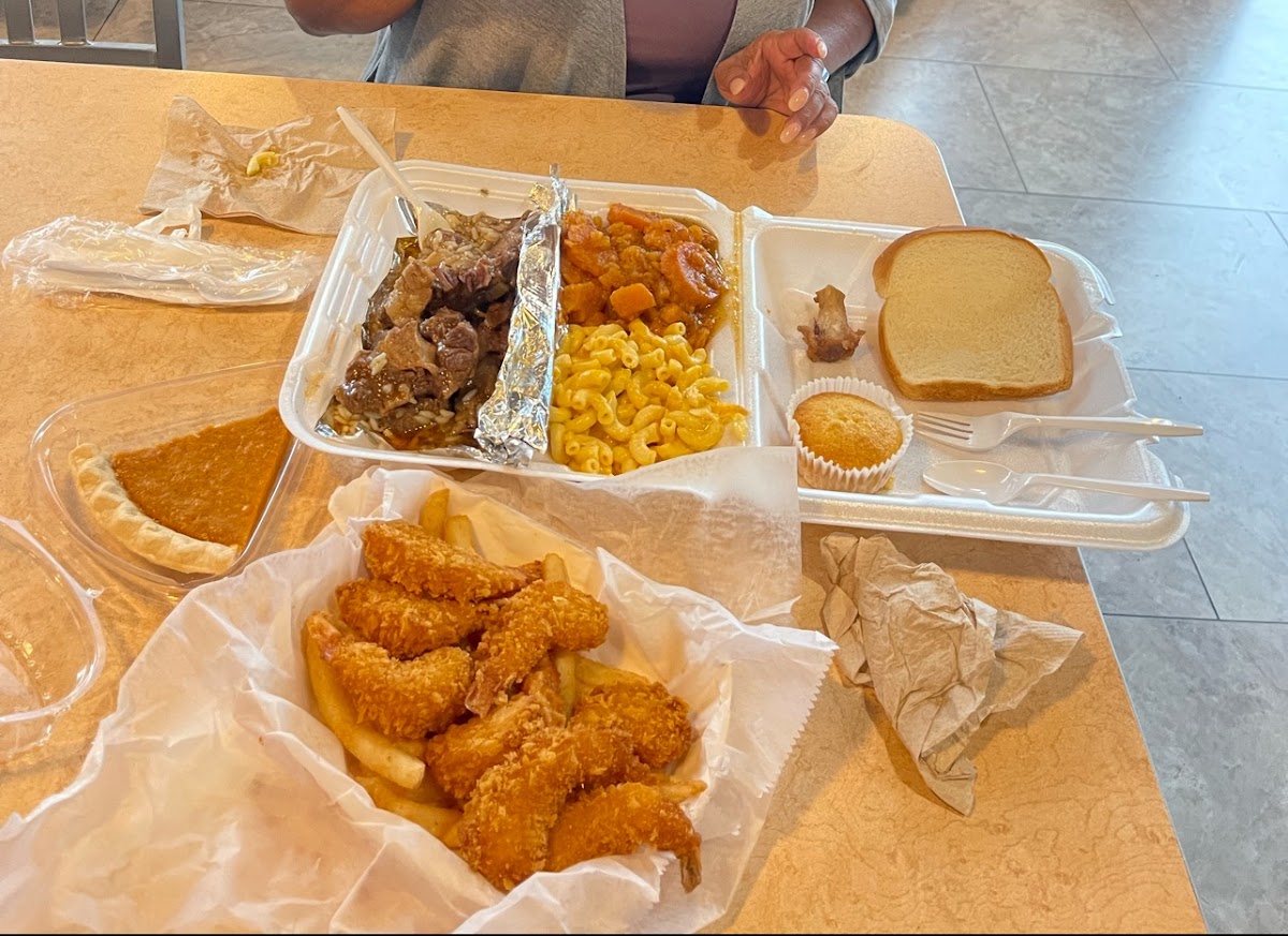 The food was excellent. In my group, we ordered smothered pork chops, grilled pork chops, smothered chicken, and ox tails. The sides were tasty and the portions were generous. Everyone was satisfied with their choices. Our server, Patrice had lots of personality and took great care of us!