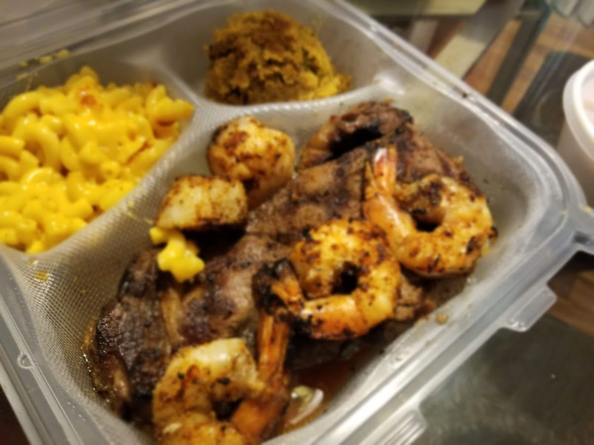 Went here for dinner for the first time tonight. I got the short rib dinner with mashed potatoes and gravy, creamed spinach and an extra side of candied yams. It also came with a corn muffin. My husband got the fried lobster tail dinner with mashed potatoes and gravy, as well as mac and cheese. The short ribs looked so good, I actually changed my order to get them. I was originally going to get the catfish. The short ribs are tender and flavorful. The gravy is rich and has pieces of onion and bell pepper. My only complaint about it is that I think it was a little too salty. The creamed spinach wasn’t what I expected. The cream part was very watery so it was just like eating steamed spinach. It did taste good though! The macaroni and cheese was excellent! The star of the show was the YAMS. Very sweet, very seasoned. Very clove heavy. Tastes like dessert, but was a welcomed change from the saltiness of the meat. The fried lobster was fried lobster so of course it was good. The service was good! They’re friendly. We will definitely return to try more of the menu. Their mac and cheese, yams and corn muffins are also toddler approved.